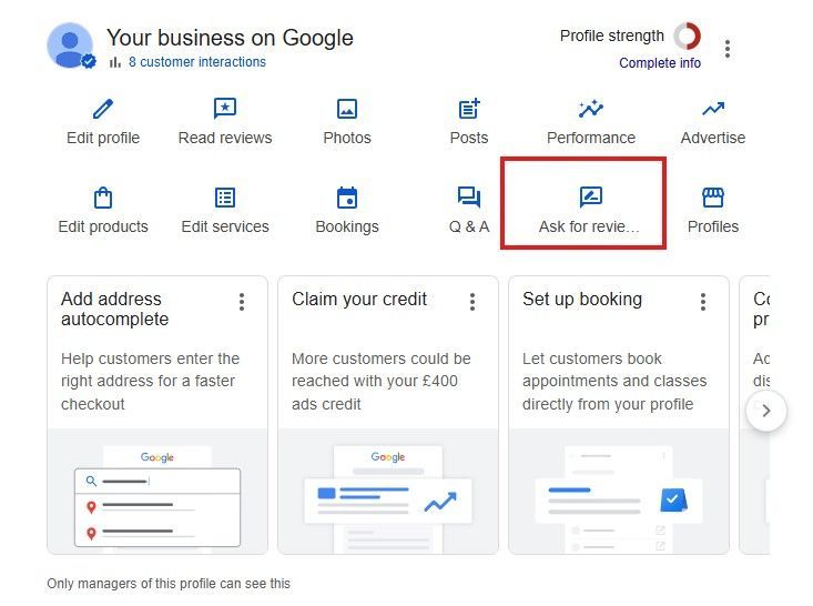 - Click ‘Customers’, then ‘Reviews’, and choose ‘Get more reviews’.